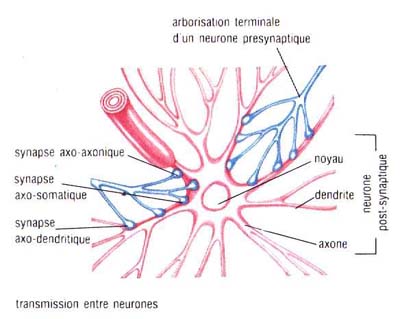 Les synapses gardent la mémoire des commandes d' actions qui ont transitées par elles . De cette manière, une commande identique repassera par le même chemin efférent. A la longue l'action pourra se perfectionner grâce à l'expérience acquise et à la "mémoire" des synapses (apprentissage de l'écriture, de la conduite etc...)