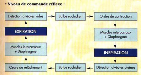 Le fonctionnement cyclique de la respiration est de l'ordre de la commande réflexe. Sa mécanique est autonome, il ne nous est pas besoin de penser chaque inspiration et chaque expiration. L'ensemble des fonction vitales nécessaire au maintient de la vie répond à ce type de commande.