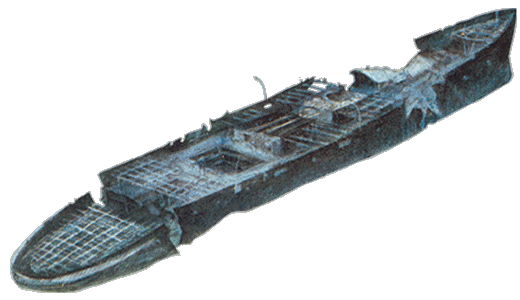 8- Voilier disloqué Trois-mâts barque. Zone d'exploration : 35 mètres de profondeur Niveau minimum requis (FFESSM) : Niv. II. |